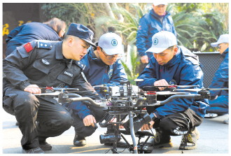 “过去无人机主要用于航拍,随着通信技术发展加快,无人机应用的领域越来越广泛,特别是在我们警务领域,无人机有大作用。”唐杰凡说。