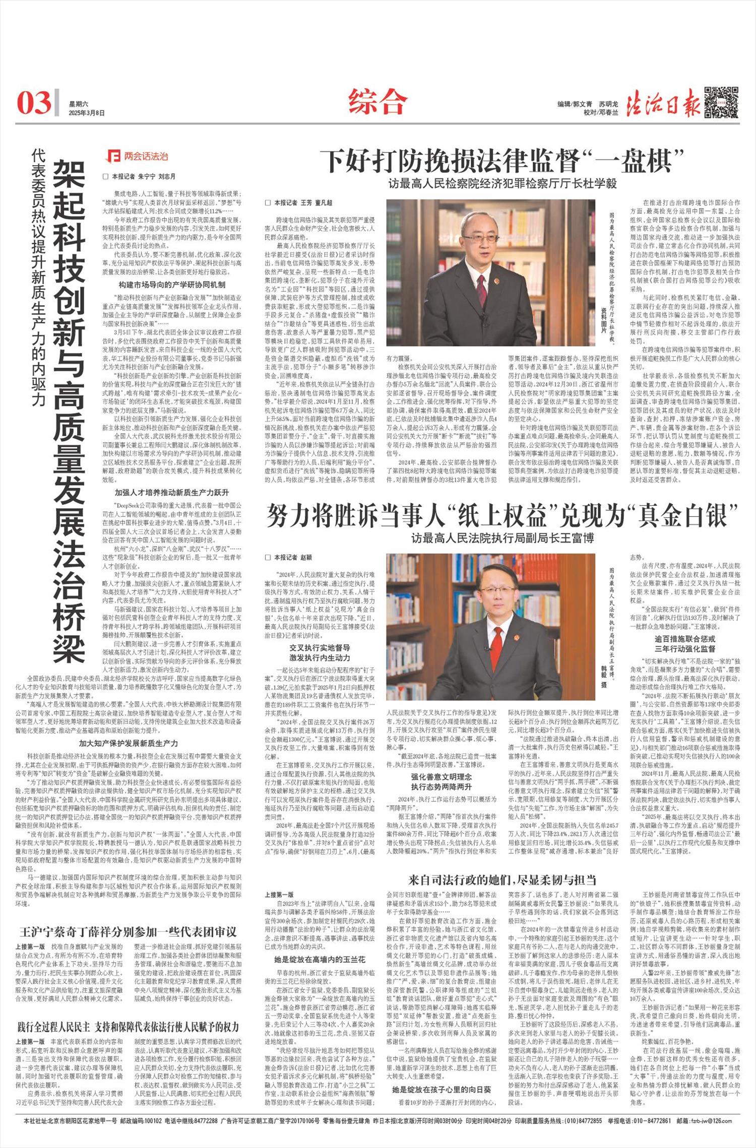 王国生委员发言说,“五个必须统筹”集中体现以习近平同志为核心的中共中央持续推进经济工作实践创新所形成的宝贵经验,是习近平经济思想丰富和发展的又一重要成果。要坚持中共中央集中统一领导,深刻理解运用“五个必须统筹”,实施更加积极有为的宏观政策,全方位扩大国内需求,以科技创新引领新质生产力发展,引导资源高效利用合理配置,构建高水平社会主义市场经济体制,推动经济持续向好。