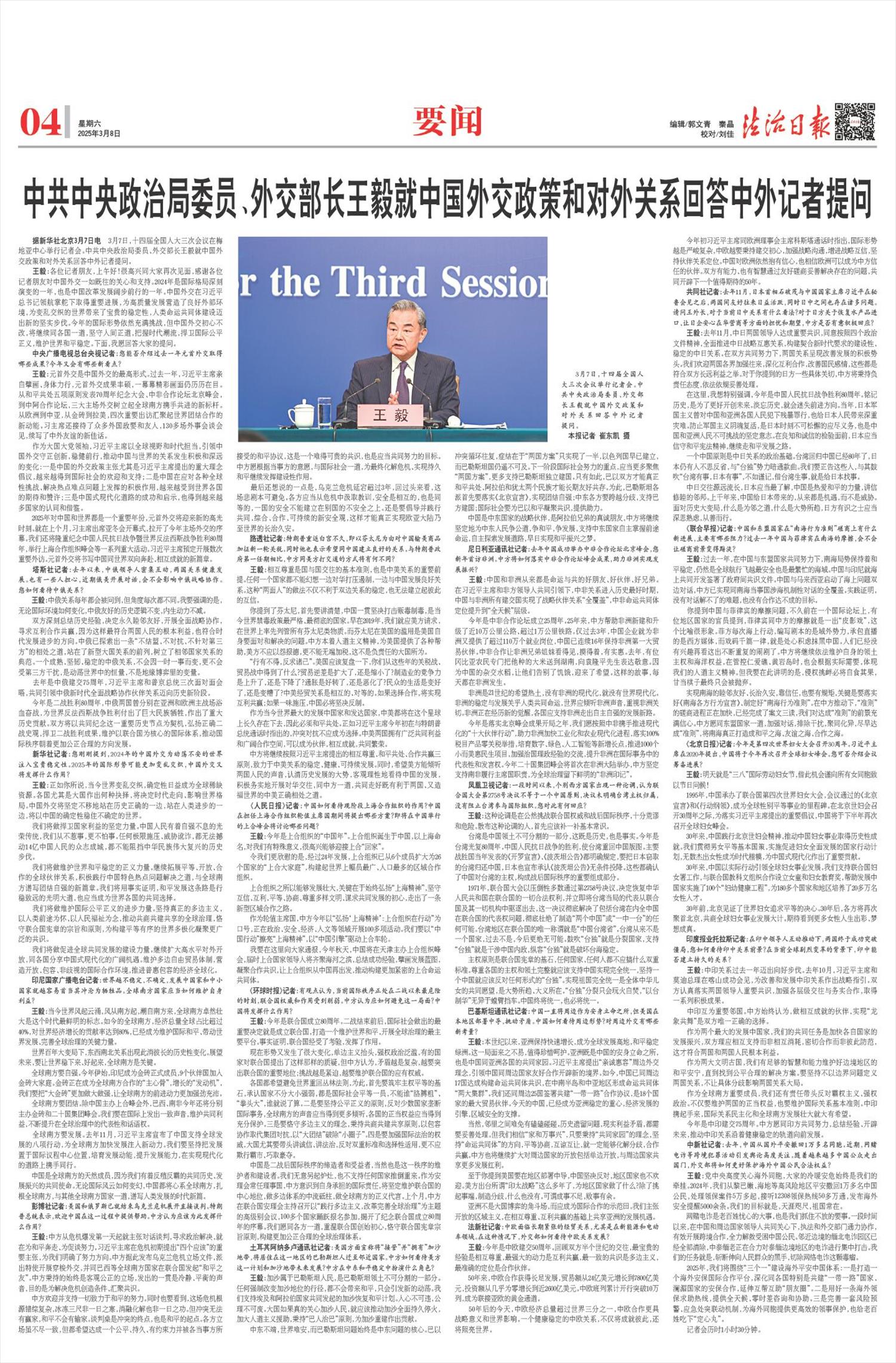 就中国外交政策和对外关系回答中外记者提问