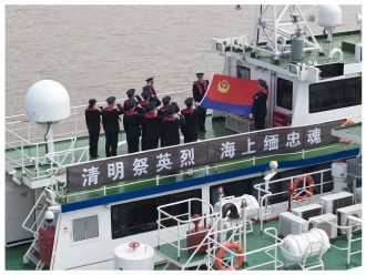 图③ 4月3日,浙江出入境边防检查总站舟山边检站联合舟山市公安局普陀区分局开展“清明祭英烈 海上缅忠魂”活动。