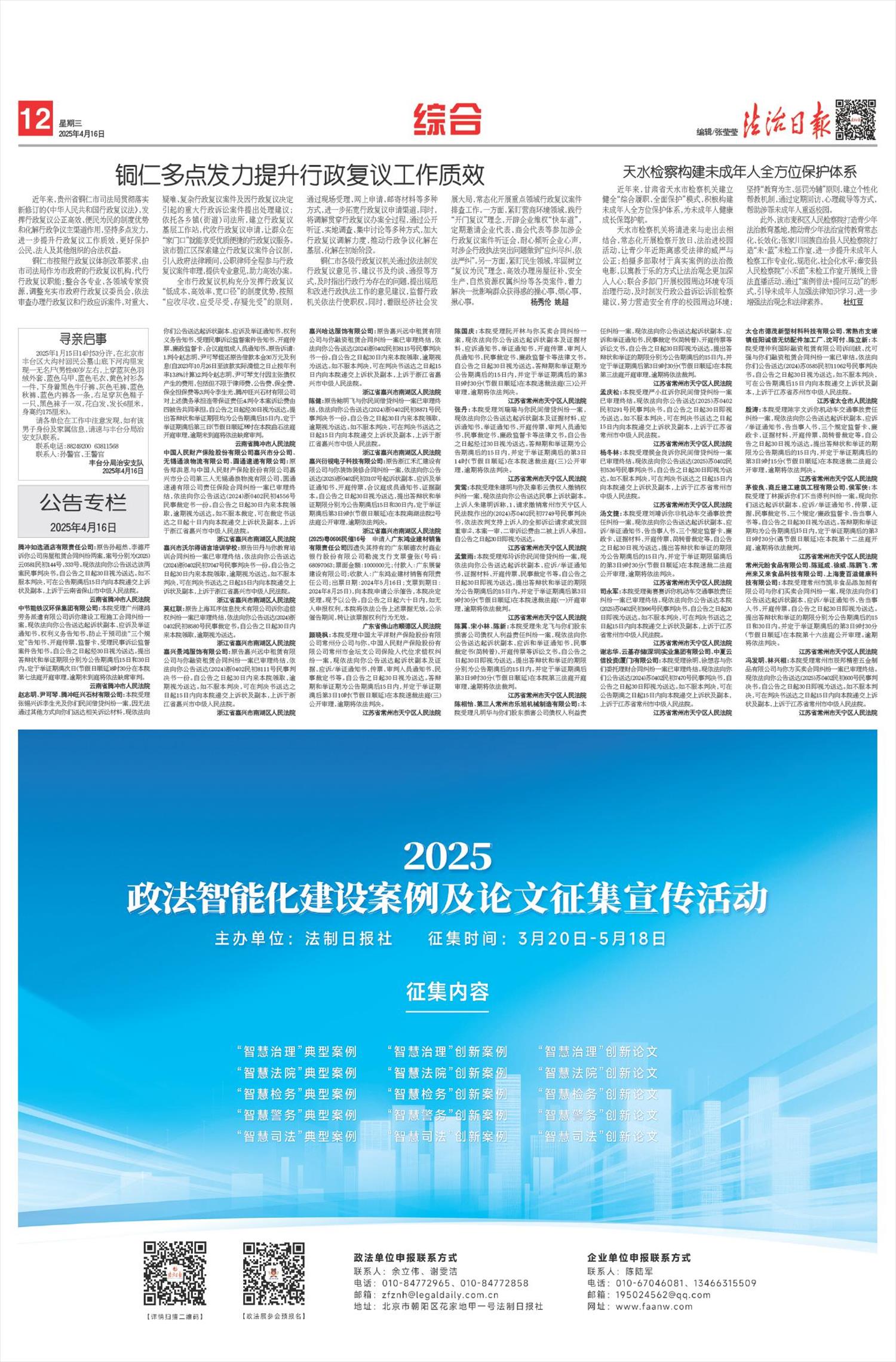 海南金财网络技术有限公司:本委已经受理申请人郭虹飞与你公司劳动争议案(海龙劳人仲案字﹝2024﹞第863号),并定于2025年5月19日9时开庭审理。因无法送达你公司,限你公司在公告之日起30日内来本委(海口市龙华区劳动关系公共服务中心,电话:0898-66707914)领取应诉通知书及其他证据材料、开庭通知书,如不按时出庭,本委将依法缺席裁决。以上材料逾期视为送达。