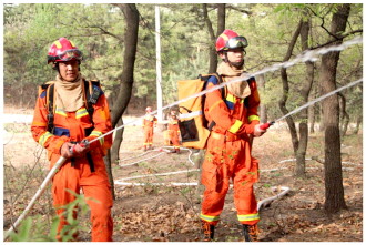 近日,山东省临沂市郯城县消防救援大队联合应急等部门开展林区灭火实战演练,通过实战模拟演练进一步检验消防应急预案的可行性和协同救援能力。图为消防员进行林区灭火实战演练。 本报通讯员 李结义 摄