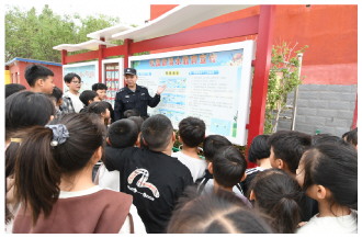 近日,河南省浚县公安局卫贤派出所组织民辅警深入辖区中小学校,开展以“珍爱生命 预防溺水”为主题的安全知识宣传活动。图为活动现场。 本报通讯员 蒋玉河 摄