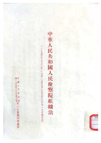 1954年9月21日,一届全国人大一次会议通过人民检察院组织法。