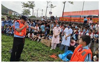 ▲ 近日,广西壮族自治区田东县公安局那拔派出所联合镇卫生院走进辖区中心小学及幼儿园开展防溺水安全教育活动,进一步增强孩子们的安全意识,提升他们防溺水能力。 本报记者 吴良艺 本报通讯员 马慧莲 摄