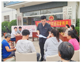 ▲ 近日,安徽省怀远县人民法院在巡回审理案件期间,向群众普及电信网络诈骗防范知识,讲解网络刷单、冒充公检法等常见诈骗手段,提升群众反诈意识和防骗能力,守护好群众的“钱袋子”。图为法官向群众发放防范诈骗宣传资料。 本报通讯员 刘流 吴刚 摄