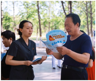 ▲ 连日来,河南省新乡市中级人民法院组织干警深入广场、商场、公园,以发放宣传资料、以案释法、法律答疑等方式开展防范非法集资诈骗普法宣传活动。图为6月16日,干警向群众讲解养老诈骗的常见手段、防范方法。 本报记者 赵红旗 本报通讯员 韦德涛 摄