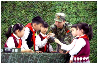 近日,安徽省合肥市双岗街道人武部开展“国防小卫士”国防教育主题实践活动,通过学习军事知识、参加队列训练、体验装备模型等,培养孩子们国防意识。