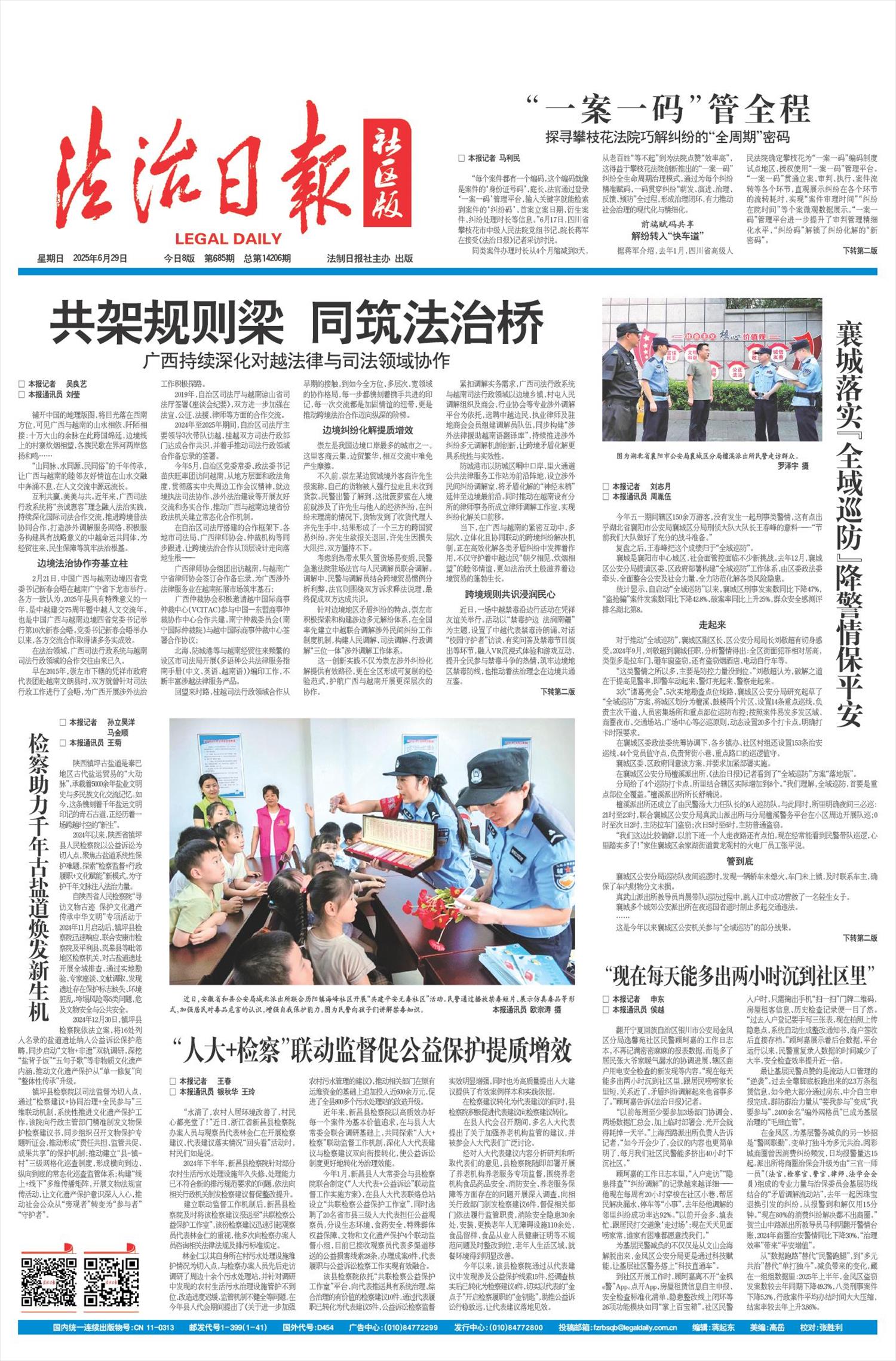 今年5月,自治区党委常委、政法委书记苗庆旺率团访问越南,从地方层面和政法角度,贯彻落实中央周边工作会议精神,就边境执法司法协作、涉外法治建设等开展友好交流和务实合作,推动广西与越南边境省份政法机关建立常态化合作机制。