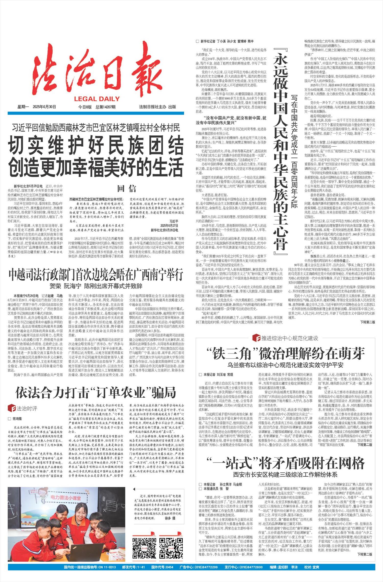 习近平强调,大家在信里说得好,看着北斗星走不迷路,跟着共产党走会幸福。希望你们在党的兴边富民好政策引领下,切实维护好民族团结,创造更加幸福美好的生活,把雪域高原的自然美景保护好,把“桃花村”品牌擦得更亮,为建设繁荣稳固的祖国边疆贡献力量。(回信全文另发)