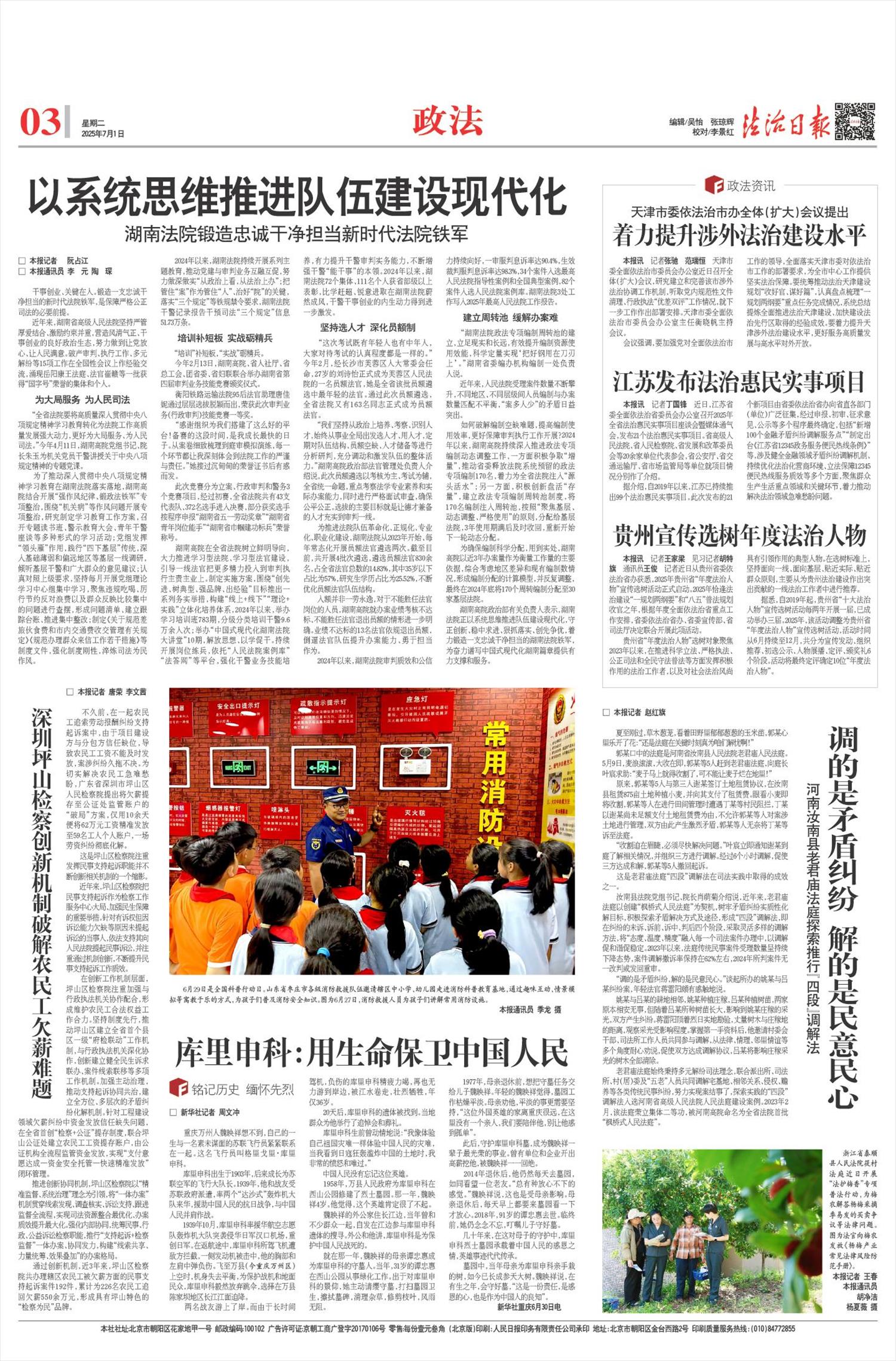 在建设更高水平平安中国、法治中国征程中,先进典型代表们犹如璀璨群星,照亮着公平正义之路,激励鼓舞着广大政法干警全面提高政治素质、履职本领、工作质效,奋力推进政法工作现代化,为强国建设、民族复兴伟业作出新的更大贡献。