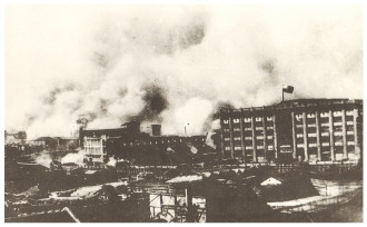 战火笼罩下的四行仓库。 (资料图片)