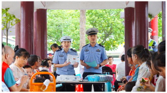 连日来,江西省赣州市公安局交警支队直属大队组织民警深入辖区乡镇,针对“一老一小”群体,开展“知危险、会避险”美丽乡村行交通安全主题普法活动。图为民警向群众普及交通安全知识。 本报记者 黄辉 本报通讯员 李凡 摄