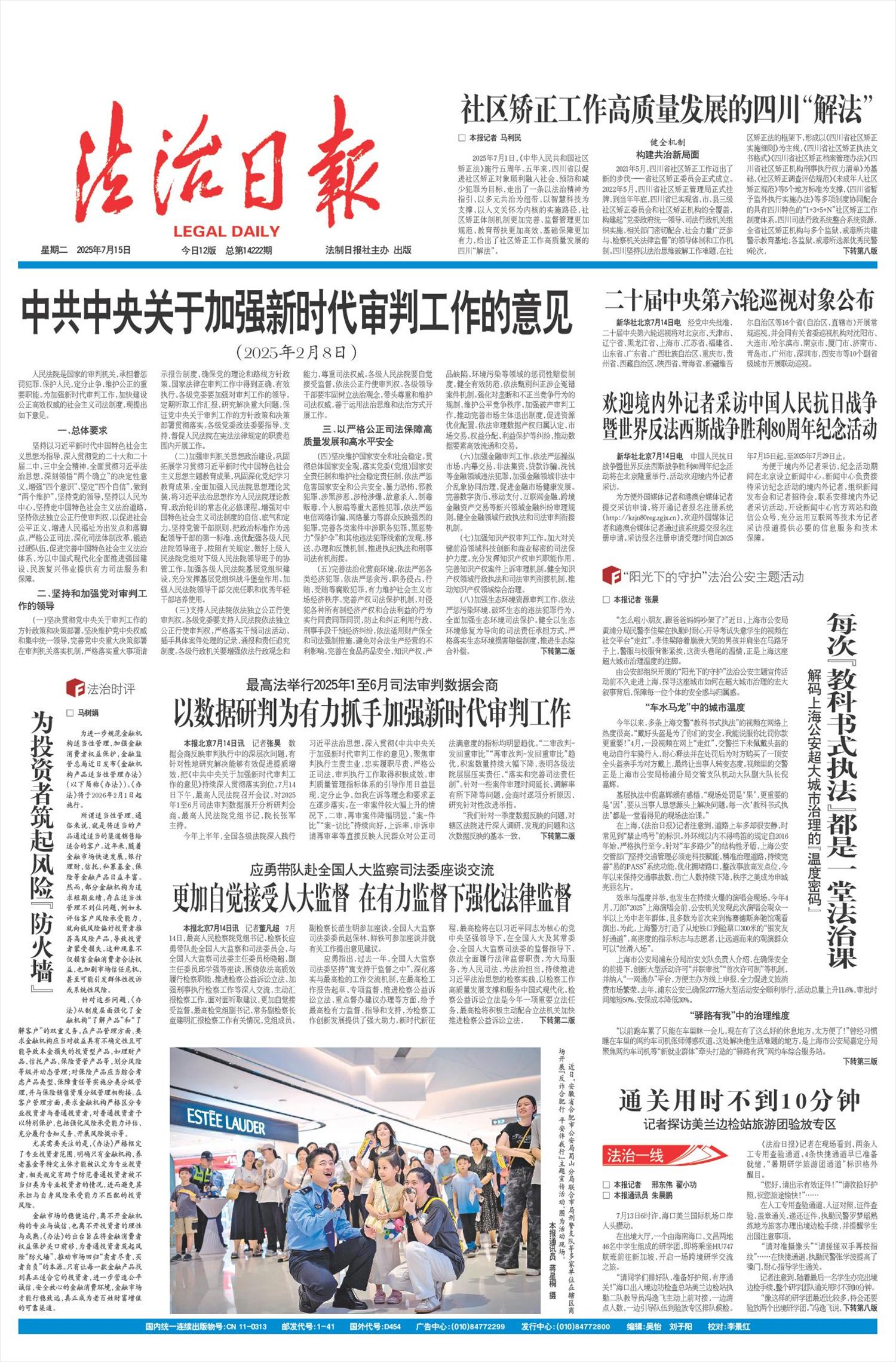 本报北京7月14日讯记者张昊数据会商反映审判执行中的深层次问题,有针对性地研究解决能够有效促进提质增效,把《中共中央关于加强新时代审判工作的意见》持续深入贯彻落实到位。7月14日下午,最高人民法院召开会议,对2025年1至6月司法审判数据展开分析研判会商。最高人民法院党组书记、院长张军主持。