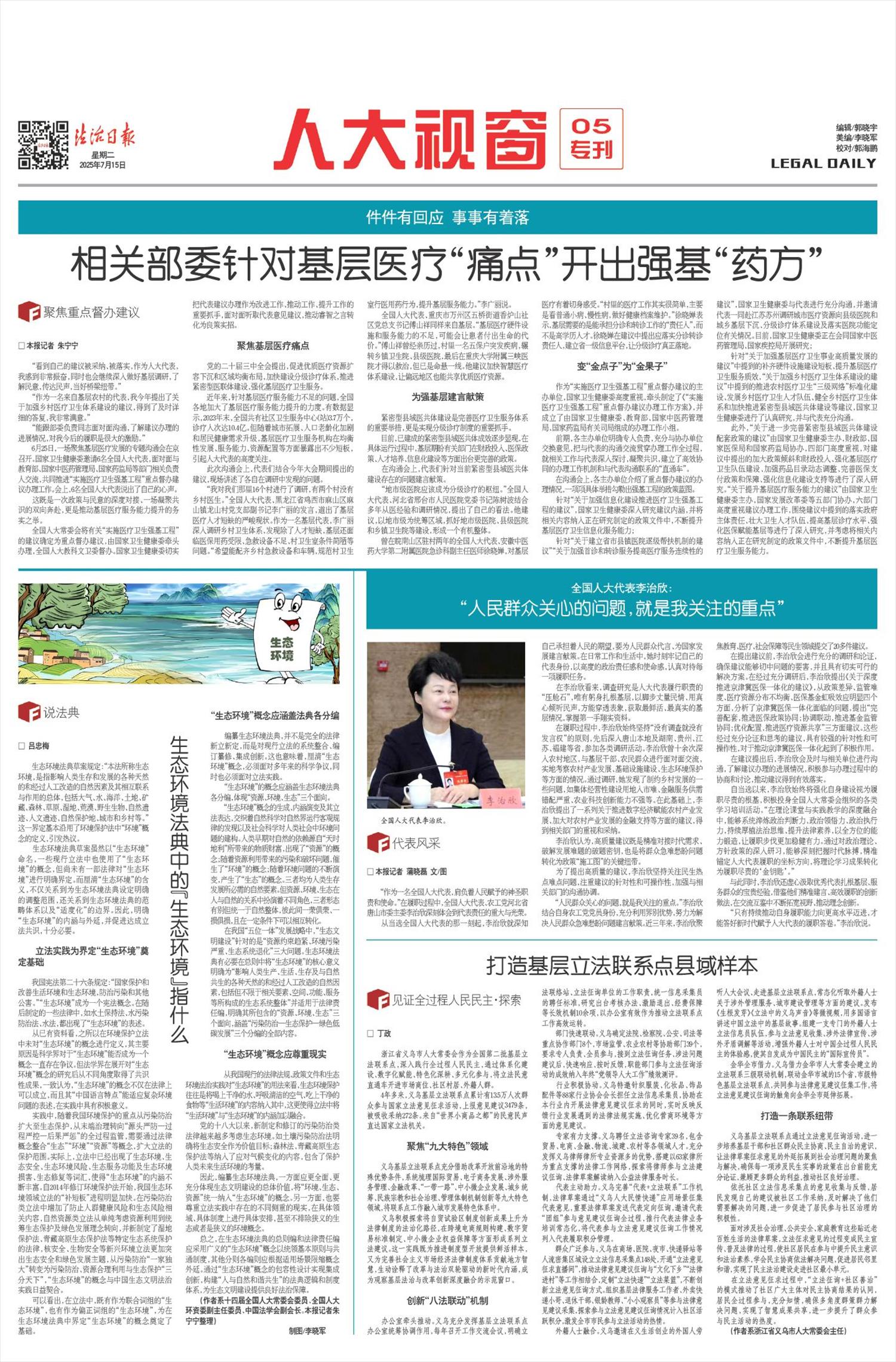 推动将习近平法治思想在公益保护领域的原创性成果法制化。下半年,全国人大常委会将听取和审议最高人民检察院关于刑罚执行监督工作情况的报告,最高检将在全国人大监察司法委监督指导下,以此次专项报告为契机,进一步加强和改进刑事执行检察工作,更好维护执法司法公正。