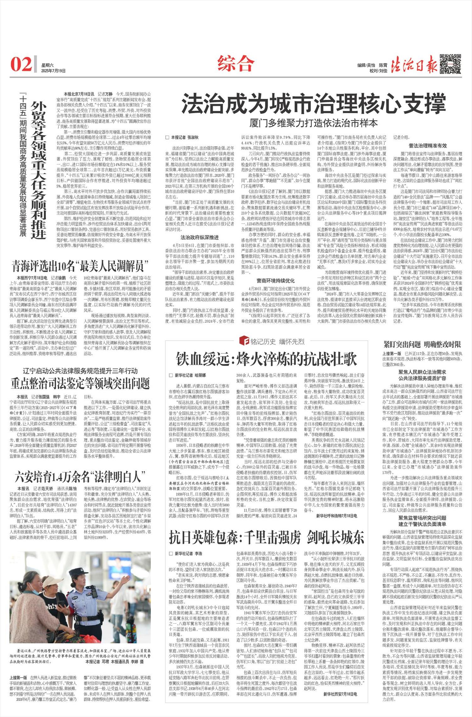 法治成为城市治理核心支撑 厦门多维聚力打造依法治市样本   □ 本报记者 张淑秋