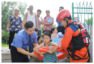 ▲ 近日,河北省邯郸市魏县人民检察院联合县消防救援大队,共同开展防溺水安全宣传活动。活动通过现场讲解真实案例、传授救援器材的使用教程、悬挂醒目警示横幅等,将安全知识送到群众身边。图为工作人员邀请小朋友现场学习救生圈使用技巧。