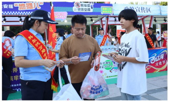 近日,内蒙古自治区通辽市举办第三届西辽河文化节,通辽市公安局科尔沁分局女警普法分队来到文化节现场,通过讲解案例、发放宣传册等方式,向游客宣讲反电诈、禁毒等法律知识。 本报记者 颜爱勇 本报通讯员 刘佳琳 邓利强 摄