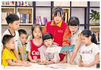 近日,国网衢州供电公司邀请浙江省衢州市常山县天马第一中心小学学生,在公司职工书屋开展暑期电力安全知识宣传活动,使“科学用电、节约用电”理念更加深入人心。图为公司员工向同学们讲解安全用电知识。 董瑞恒 摄