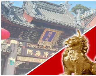 一般在城隍庙正殿前的牌坊或献殿前安放一个算盘,上书:人算不如天算,或者写着“不由人算”。陕西省西安市西大街的都城隍庙、上海城隍庙、江苏省南通城隍庙等都悬挂大算盘为特殊构件。