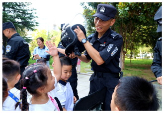 图③ 为提升学生安全意识,安徽省亳州市公安局近日组织开展了一场别开生面的警营开放日活动,来自辖区幼儿园的100余名师生受邀走进警营,民辅警通过游戏等方式向学生传授暑期安全知识。图为活动现场。