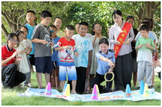 图① 7月28日,湖北省沙洋县公安局民警走进洪岭社区“爱心托管班”,向青少年开展防溺水、预防校园欺凌及禁毒知识宣传。图为民警通过趣味游戏向青少年讲解相关知识。