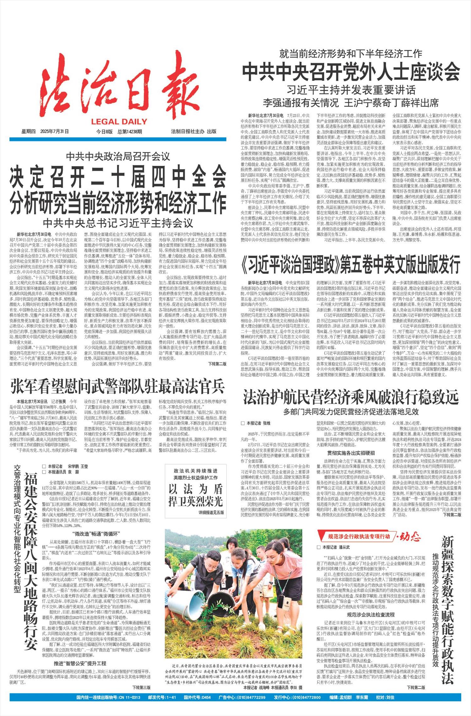 作为贯彻落实党的二十届三中全会和习近平总书记在民营企业座谈会上重要讲话精神的重大举措,司法部、国家发展改革委会同有关方面研究起草民营经济促进法草案。4月30日,十四届全国人大常委会第十五次会议表决通过了《中华人民共和国民营经济促进法》,该法自2025年5月20日起施行。