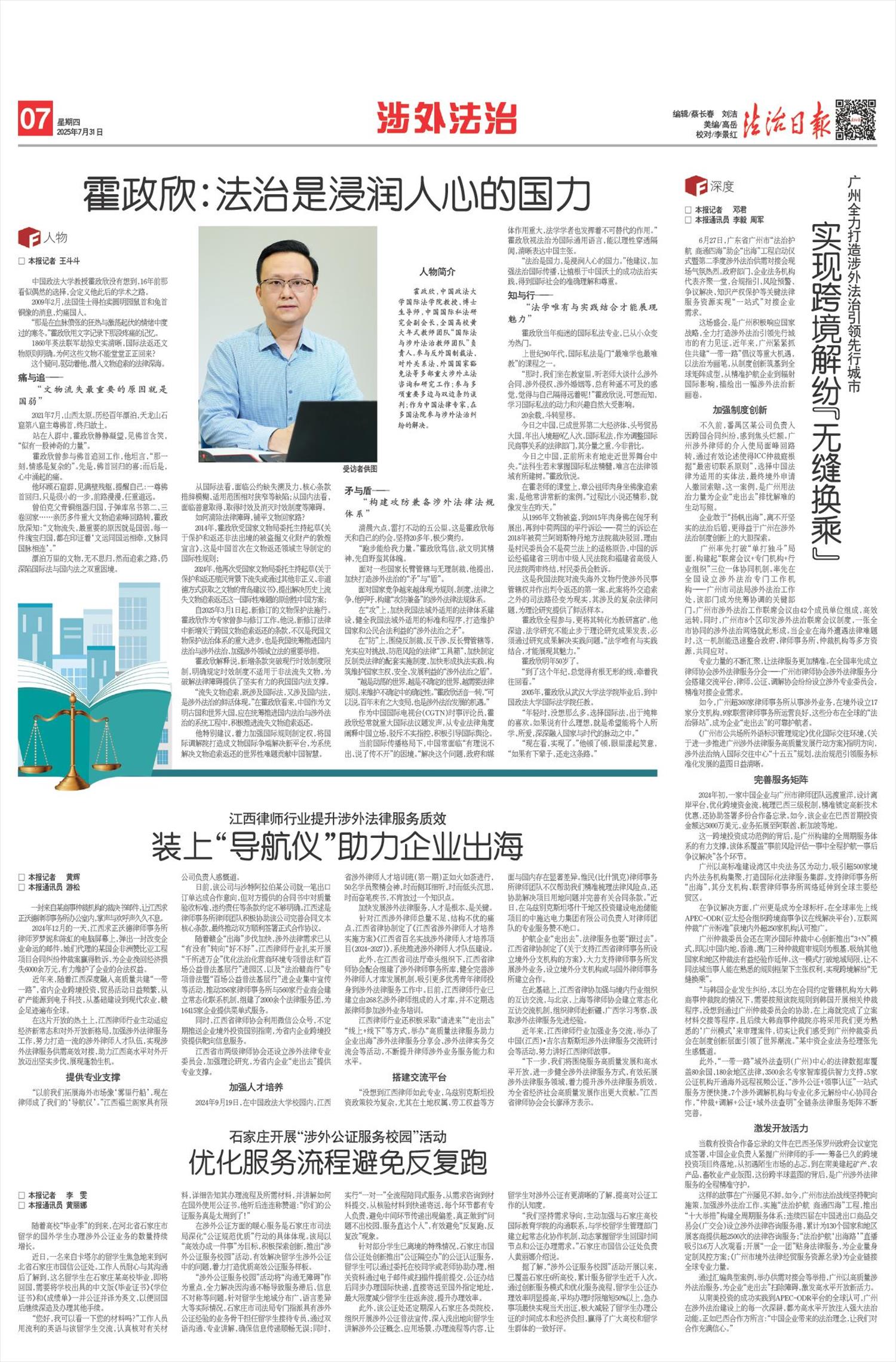 全国政协委员,全国工商联副主席、宁德时代新能源科技股份有限公司董事长兼总经理曾毓群为司法部的涉外法律服务点赞:“海外权益保护问题是‘走出去’企业的重要关切,司法部不断加强涉外法律服务,以法治护航民营企业顺利出海、逐浪前行,提升了企业参与全球市场竞争的信心和安全感。”