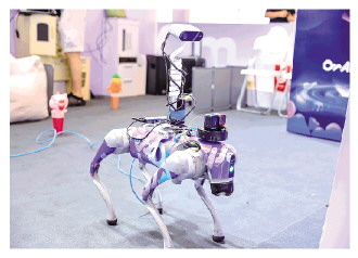 2025年7月29日,在上海,2025世界人工智能大会。联汇科技,搭载了OmAgent平台的机器狗。