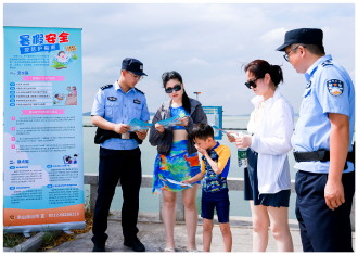 图① 连日来,江苏省苏州市公安局吴中分局紧盯太湖水域重点区域、重点时段,采用“人员岸线巡、船艇水中巡、无人机空中巡、视频网上巡”模式,加大水域巡防警力投放和巡逻频次,织密立体巡防网。图为民警向群众宣传防溺水知识。
