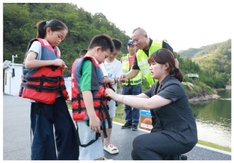 图② 针对暑期溺水事故易发多发特点,连日来,江西省横峰县人民法院组织干警走进辖区社区和水库开展防溺水宣传活动,引导群众尤其是青少年增强安全意识。图为法院干警在岑山国家森林公园向正在游玩的青少年宣传防溺水知识。