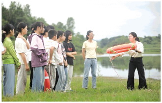 暑假期间,贵州省黔西市绿化白族彝族乡各村开设“支书课堂”,由村干部向村里孩子们讲授安全、农耕等知识,丰富孩子们的暑期生活。图为8月12日,在小海子村“支书课堂”,村干部给孩子们讲解救生圈的使用方法。 本报通讯员 周训超 摄