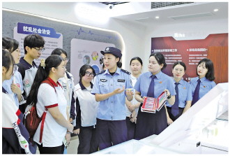 近日,安徽省马鞍山市人民检察院、当涂县人民检察院联合当涂县公安局开展暑期法治实践活动。图为检察官和民警在禁毒教育基地向参加活动的学生讲解识毒防毒知识。 本报记者 范天娇 本报通讯员 王秋忆 摄