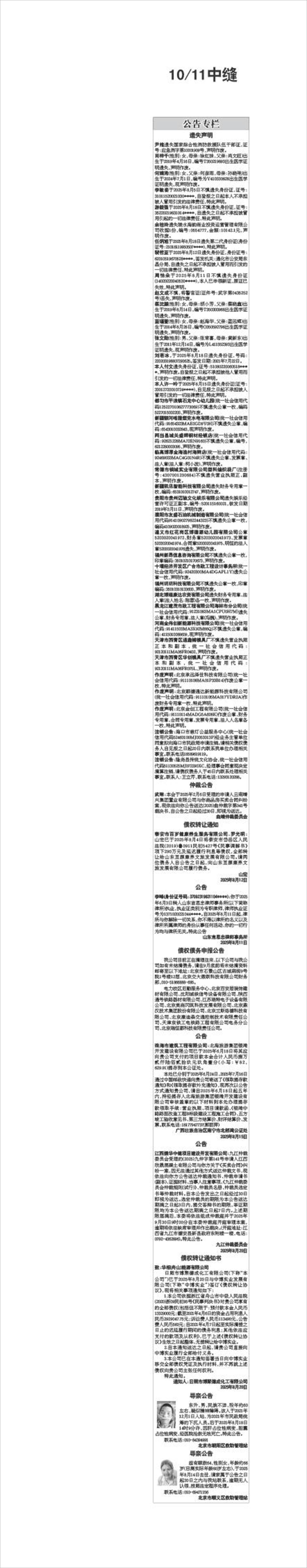 裴哲亚于2025年8月12日遗失身份证,身份证号:62010519670528****,签发机关:通化市公安局东昌分局,自遗失之日起不承担被人冒用而引发的一切法律责任,特此声明。
