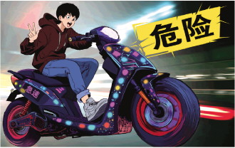 8月15日傍晚,北京四环路的辅路上,《法治日报》记者正驾车随晚高峰车流前行,一辆贴满荧光贴纸的电动自行车突然从车缝中斜穿而出。车把上挂着的LED灯条闪烁着红蓝色光芒,骑车的少年身体前倾,转眼便消失在视线中。
