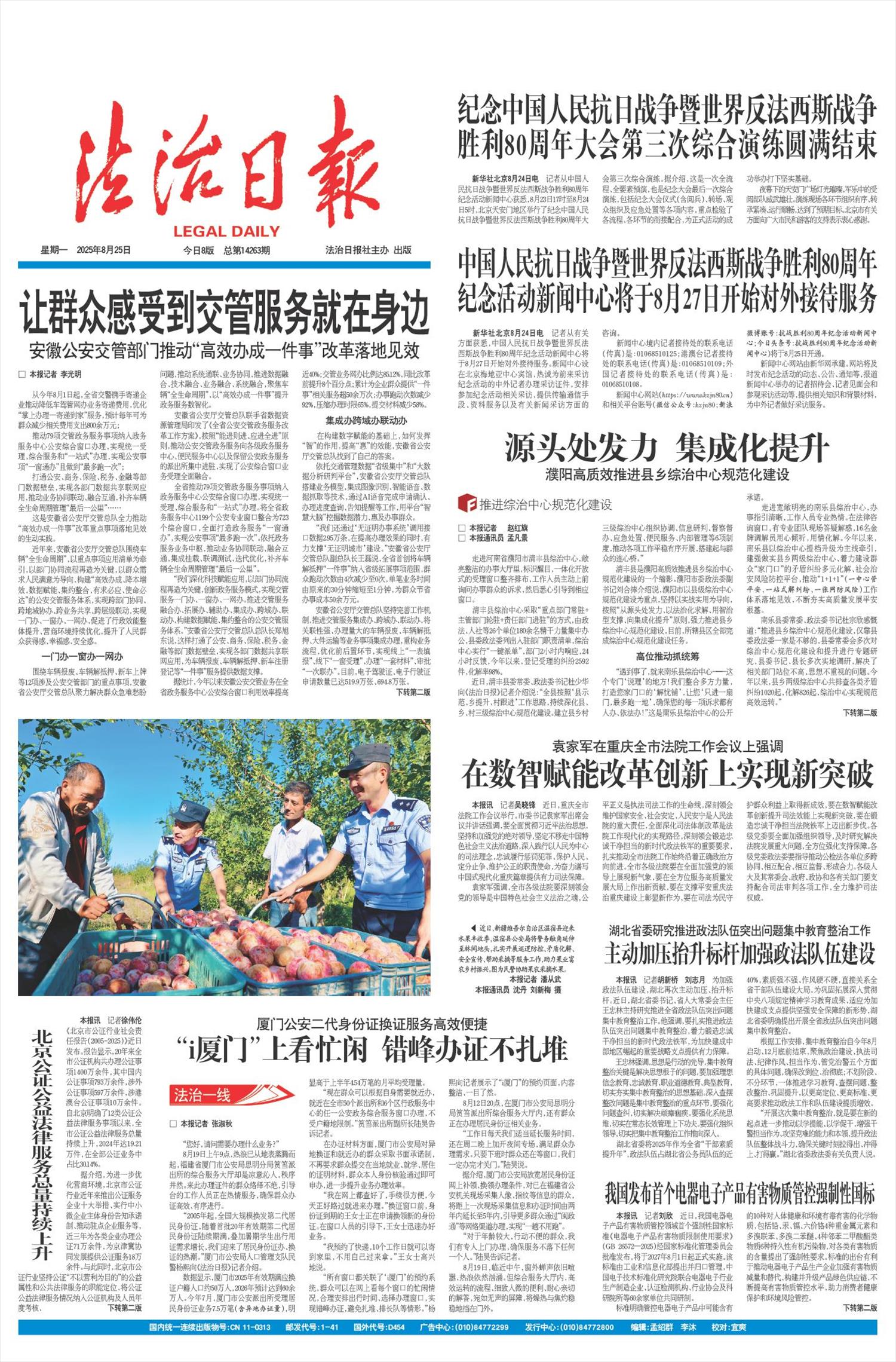 据了解,2025年是“公证提质增效三年行动”的收官之年,今年以来北京市公证机构在5个工作日内出证办理的公证事项约24.6万件,占总量的80%以上;实行“容缺受理”公证事项9.1万件,占总量的30%以上。在此基础上,北京市将进一步优化措施,实现办证材料能减尽减、办理时限能快尽快,并优化监护、继承、遗嘱等民事类公证业务办理流程,对行动不便的老年人提供上门办证、预约办证等服务,开展遗嘱监护、意定监护等领域的公证服务工作,同时鼓励公证机构参与破产清算、遗产管理等财产管理事务,民事信托、慈善信托等活动的法律服务,支持公证机构进行“公证+区块链”探索,助力数字经济企业应对数据安全和知识产权双重挑战。