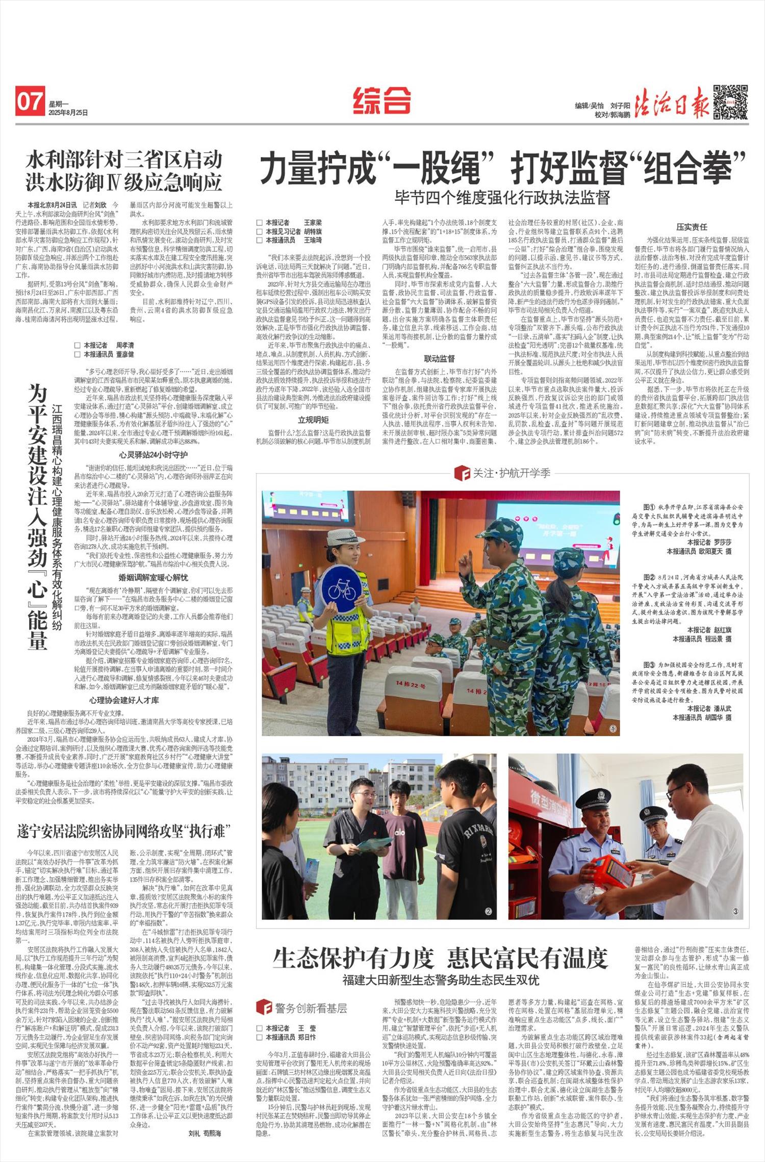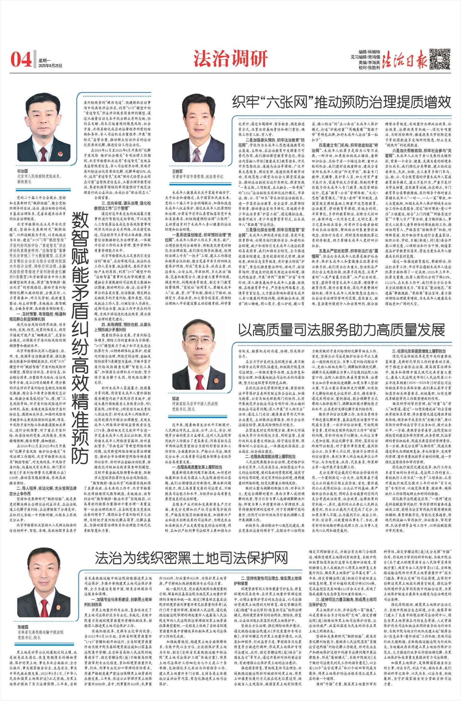 “我们以综治中心标准化建设为抓手,创新构建‘风险预防—矛盾化解—动态管控’全周期治理闭环,通过对矛盾纠纷三级联动‘把脉问诊’,建立县乡村三级‘坐诊+巡诊+出诊’机制,创新‘合法+合理+合情’调处标准,实现案结事了。”濮阳县委常委、政法委书记蒋倩说。