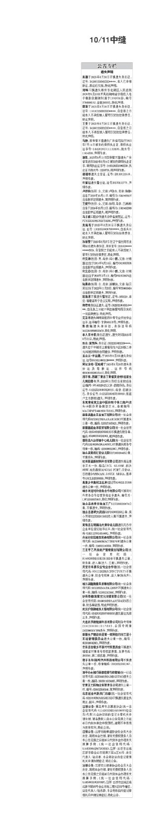 薛澍于2025年8月30日不慎遗失身份证,证号:11010319880305****,自登报之日起本人不承担被人冒用引发的法律责任,特此声明。