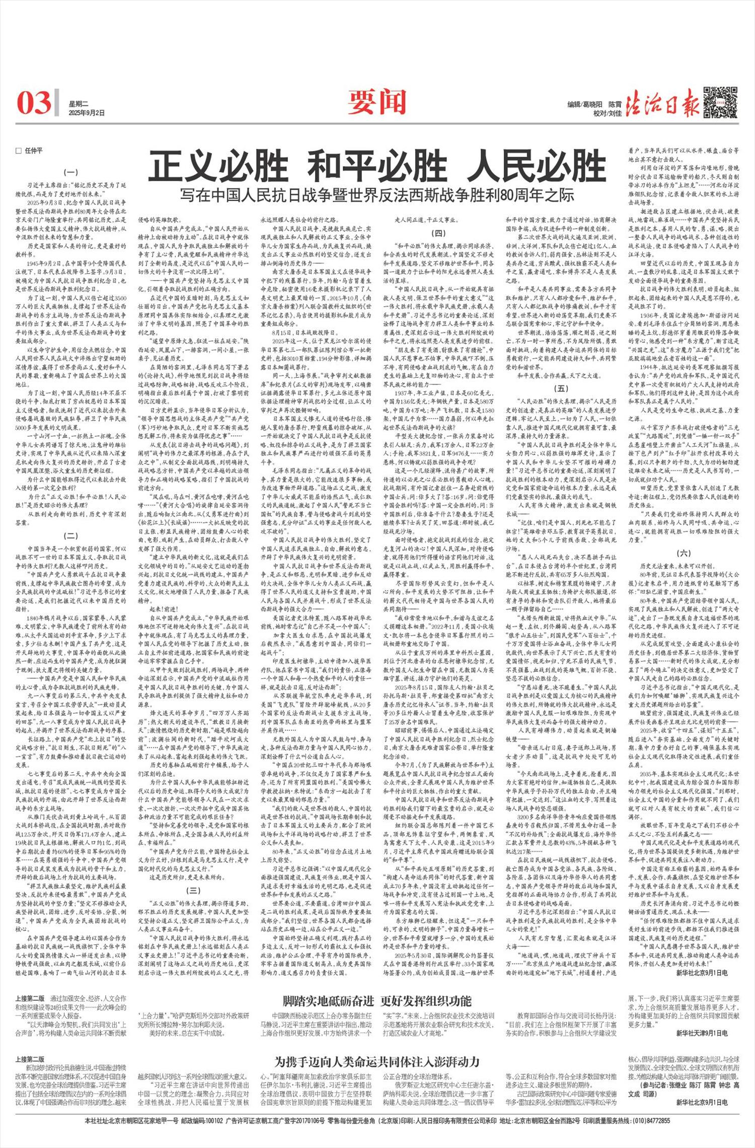 “执大象,天下往。”再过两天,中方将在北京隆重举行纪念中国人民抗日战争暨世界反法西斯战争胜利80周年活动,很多同事都将出席。中方愿同各方一道,勇担大义、笃行大道,弘扬正确二战史观,坚定维护二战胜利成果,让推进全球治理体系变革、推动构建人类命运共同体的成果更多更好造福全人类!