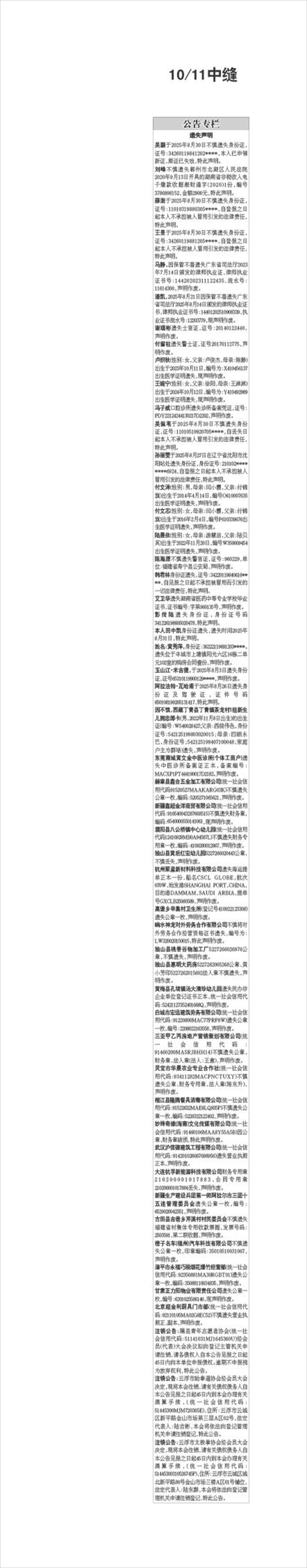 吴佩苇于2025年8月30日不慎遗失身份证,证号:11010519920705****,自丢失日起本人不承担被人冒用引发的法律责任,特此声明。