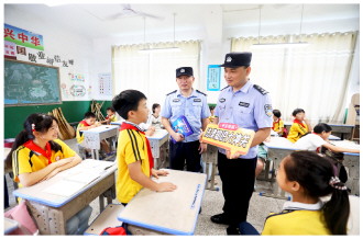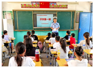 ▲ 新学期伊始,江西省分宜县公安局组织民辅警走进辖区校园,开展普法宣传活动,增强青少年的法治观念和自我保护能力。图为9月5日,民辅警走进杨桥镇中心学校向学生们讲解防溺水、防校园欺凌、防火灾等安全知识。 本报记者 黄辉 本报通讯员 黄小军 摄