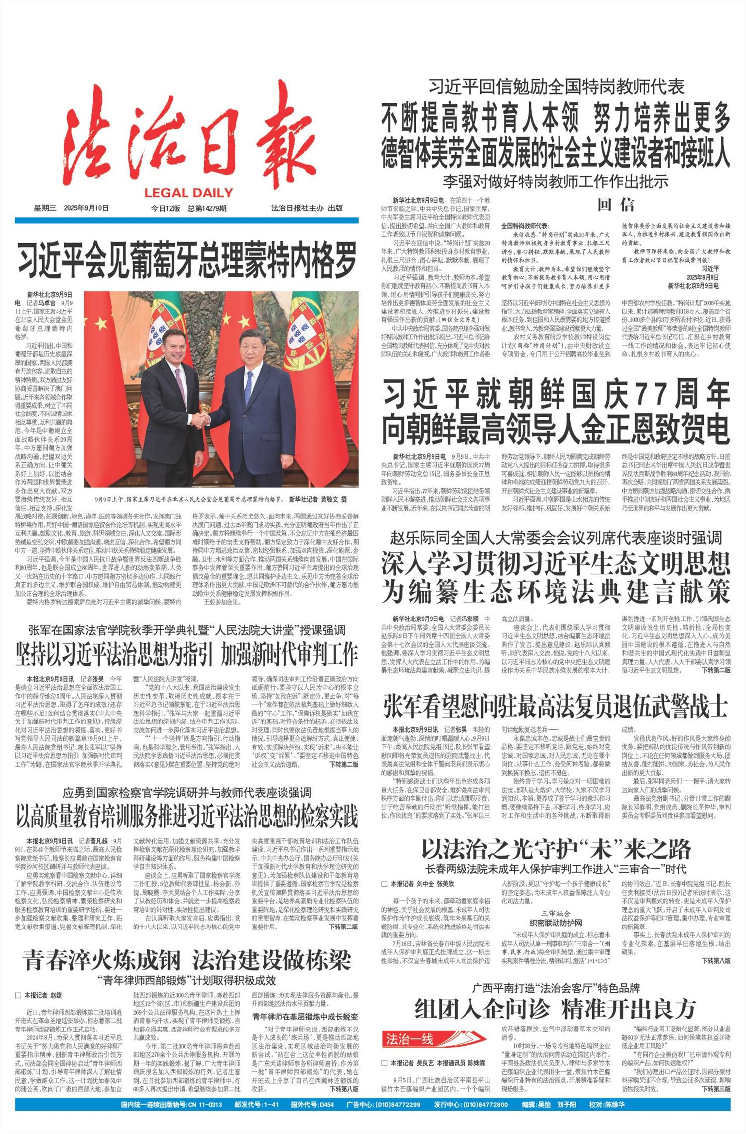 新华社北京9月9日电 记者马卓言 9月9日上午,国家主席习近平在北京人民大会堂会见葡萄牙总理蒙特内格罗。
