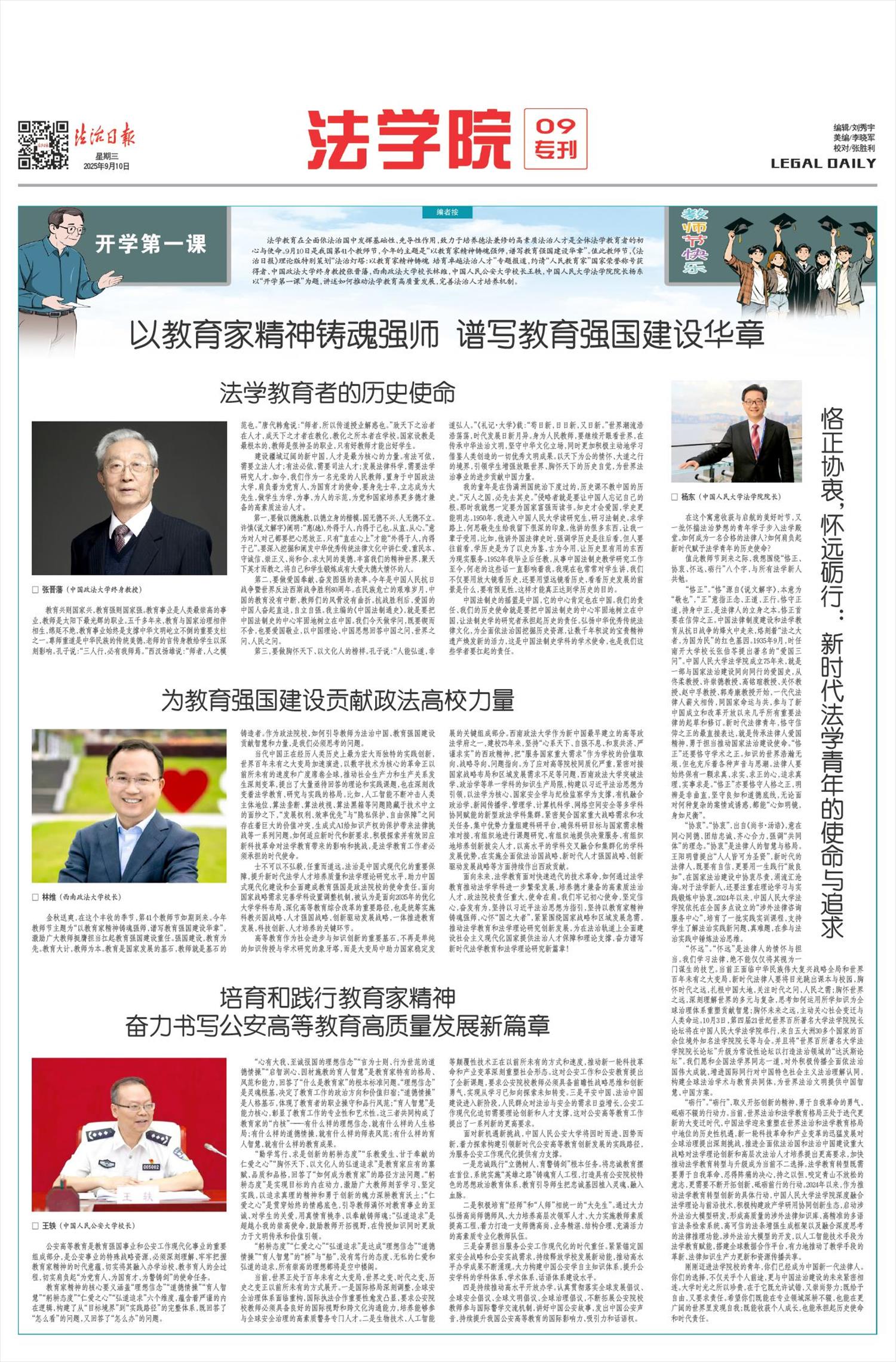 本报北京9月9日讯 记者董凡超 9月9日,在第41个教师节来临之际,最高人民检察院党组书记、检察长应勇前往国家检察官学院沙河校区调研并与教师代表座谈。