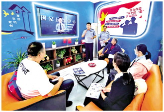 去年以来,新疆维吾尔自治区塔城地区乌苏市公安局新市区派出所通过在辖区一家医院建立警医联动工作站,将户籍、车驾管等多项高频政务服务延伸至医院一线,并打造“反诈一角”普法宣传阵地,向就诊患者及周边居民开展反诈宣传。图为民辅警近日在工作站向就诊患者开展反诈宣传。 本报记者 潘从武 摄