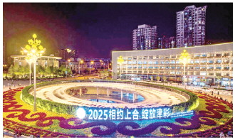 图为位于天津站后广场的“2025相约上合 绽放津彩”标识。 新华社记者 赵子硕 摄