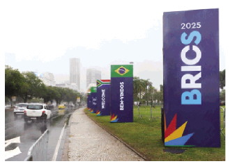 图为7月3日在巴西里约热内卢拍摄的金砖国家领导人第十七次会晤欢迎标语牌。