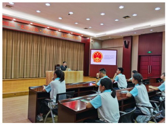 近日,浙江省瑞安市人民法院开展公众开放日活动,邀请20余名中学生走进法院。法院干警用浅显易懂的语言向同学们讲解了法院的审判职能、审判流程等,并邀请几名同学参与模拟法庭。图为法官给学生上法治课。 本报通讯员 徐以诺 摄