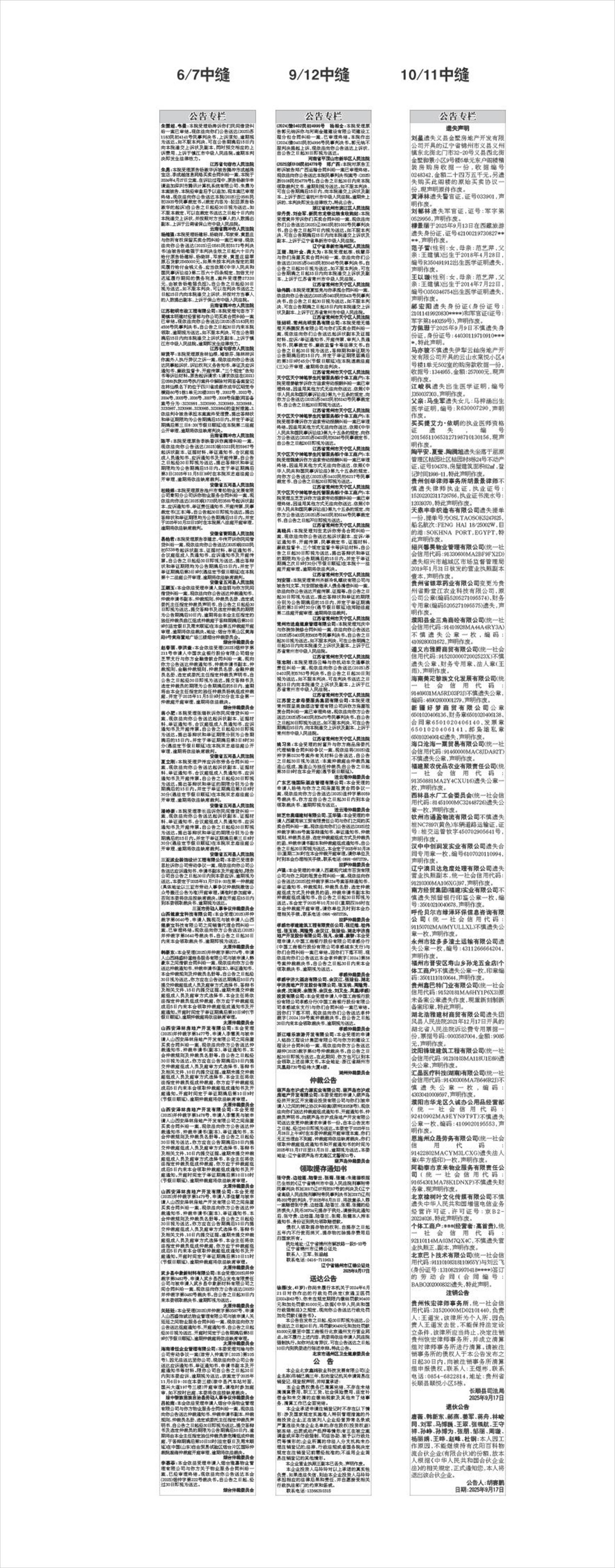 公告专栏   10/11中缝