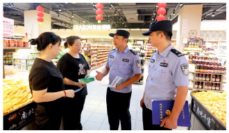 连日来,江西省分宜县公安局组织民警开展“尚德守法 共享食安”主题普法宣传活动。图为9月16日,民警在超市宣讲食品安全知识。 本报记者 黄辉 本报通讯员 黄小军 摄