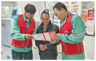 连日来,国网奎屯供电公司组织共产党员服务队,在辖区开展用电安全隐患排查和保护电力设施宣传活动。图为服务队队员在开干齐乡供电所营业厅,向办理业务的农户讲解电力设施保护知识。 周亚珍 摄